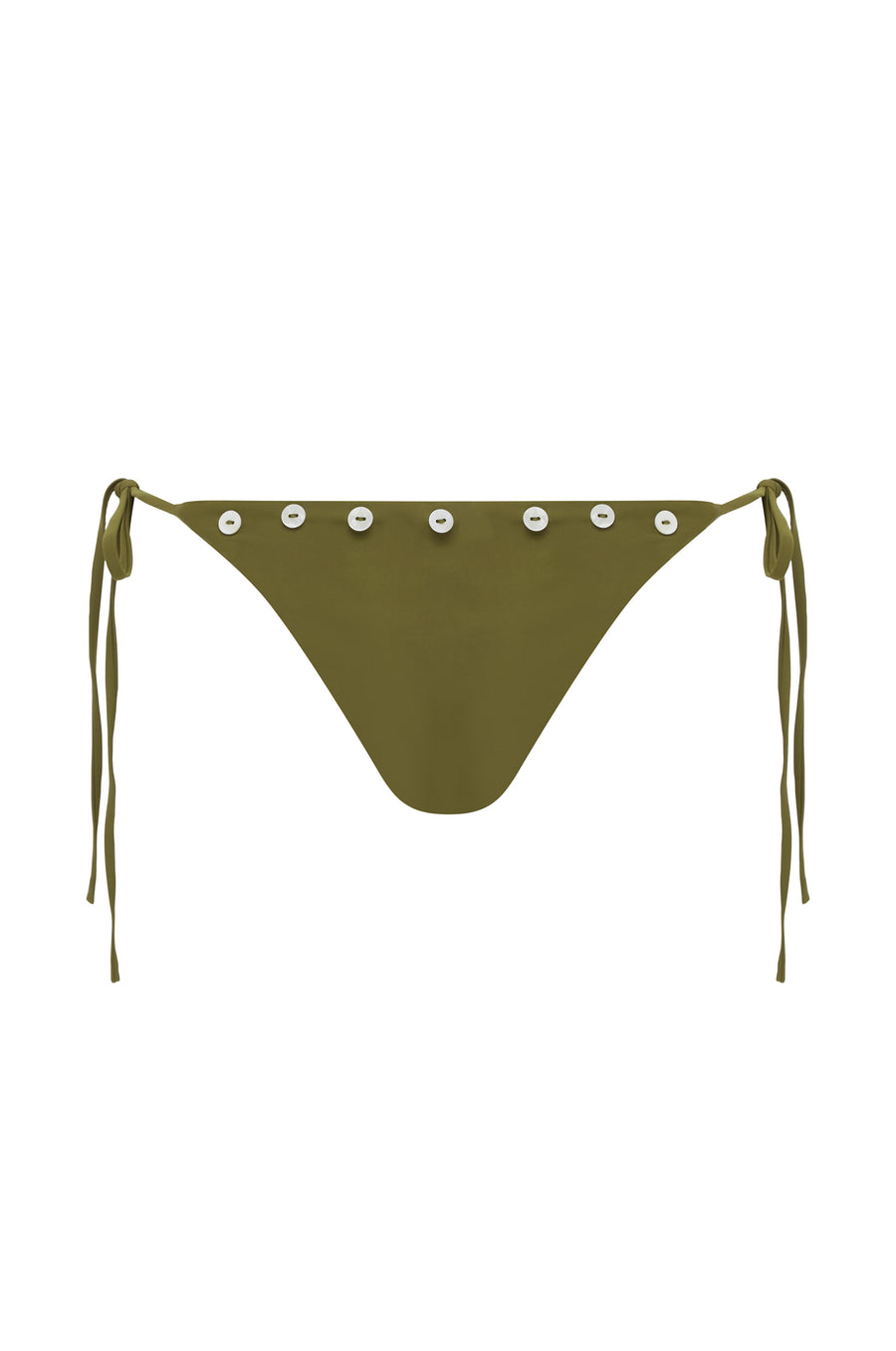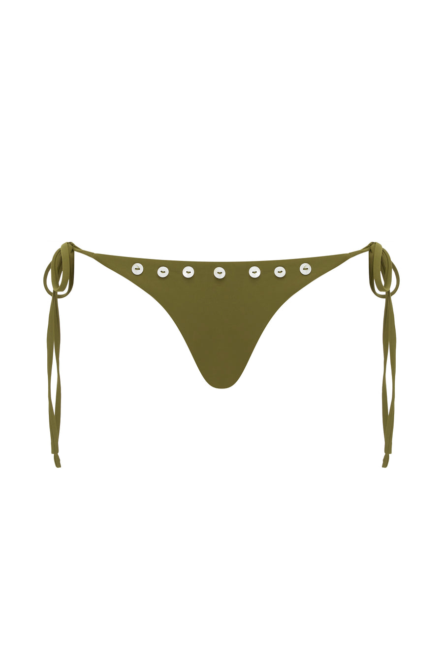 The Bella Bikini Top is an adjustable halter-style top featuring studded detailing and a back tie closure.