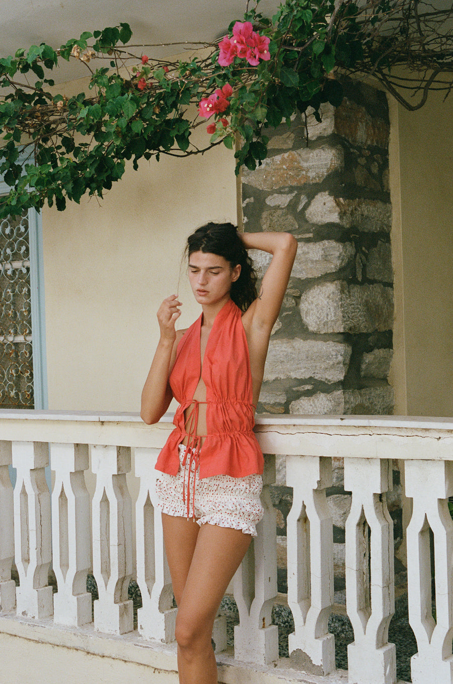 The Bea Shorts are a mid rise scrunch short, designed to be worn low on the hips, featuring elasticated ruched detailing throughout, and contrast bow at centre front.