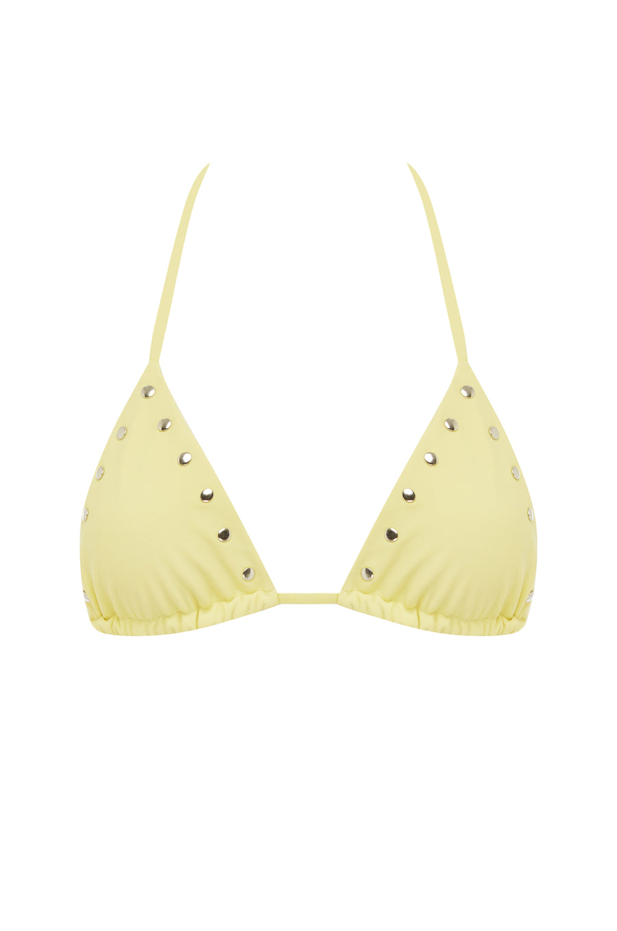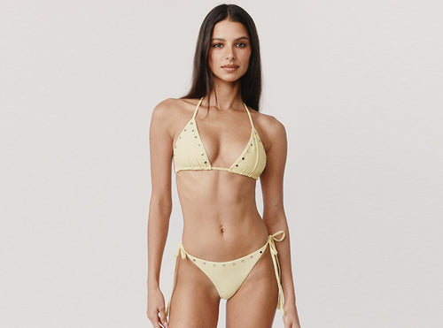 The Billie Bikini Bottom is a cheeky cut bottom featuring tie sides and studded detailing.