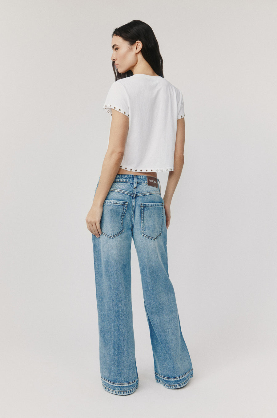 The Demi Top is a long sleeve knitted top with shell button detailing and an asymmetrical hem.