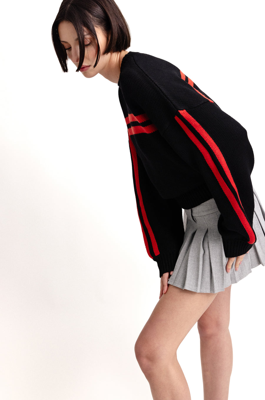 The Hudson Mini Skirt is a low rise, mini length pleated skirt designed to be worn low on the hips featuring exaggerated belt loops, and a back zip closure.